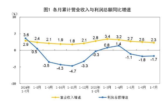 1—7月份,全国规模以上工业企业实现利润总额40203.5亿元,同比下降1.7%。 1—7月份,规模以上工业企业中,国有控股企业实现利润总额12823.4亿元,同比下降7.5%;股份制企业实现利润总额29742.5亿元,下降2.8%;外商及港澳台投资企业实现利润总额10216.7亿元,增长1.8%;私营企业实现利润总额11183.7亿元,增长1.8%。 1—7月份,采矿业实现利润总额4930.9亿元,同比下降31.6%;制造业实现利润总额30235.8亿元,增长4.8%;电力、热力、燃气及水生产和供应业实现利润总额5036.8亿元,增长3.9%。 1—7月份,主要行业利润情况如下:农副食品加工业利润同比增长14.5%,电气机械和器材制造业增长11.7%,有色金属冶炼和压延加工业增长6.9%,计算机、通信和其他电子设备制造业增长6.7%,通用设备制造业增长6.4%,电力、热力生产和供应业增长6.3%,专用设备制造业增长3.2%,汽车制造业增长0.9%,非金属矿物制品业下降5.6%,纺织业下降6.5%,化学原料和化学制品制造业下降8.0%,石油和天然气开采业下降12.6%,煤炭开采和洗选业下降55.2%,石油煤炭及其他燃料加工业同比减亏。 1—7月份,规模以上工业企业实现营业收入78.07万亿元,同比增长2.3%;发生营业成本66.80万亿元,增长2.5%;营业收入利润率为5.15%,同比下降0.21个百分点。 7月末,规模以上工业企业资产总计183.67万亿元,同比增长4.9%;负债合计106.26万亿元,增长5.1%;所有者权益合计77.41万亿元,增长4.6%;资产负债率为57.9%,同比上升0.2个百分点。 7月末,规模以上工业企业应收账款26.84万亿元,同比增长6.8%;产成品存货6.67万亿元,增长2.4%。 1—7月份,规模以上工业企业每百元营业收入中的成本为85.57元,同比增加0.24元;每百元营业收入中的费用为8.38元,同比减少0.08元。 7月末,规模以上工业企业每百元资产实现的营业收入为74.0元,同比减少1.9元;人均营业收入为182.6万元,同比增加5.4万元;产成品存货周转天数为20.5天,同比增加0.2天;应收账款平均回收期为69.8天,同比增加3.7天。 7月份,规模以上工业企业利润同比下降1.5%。 |